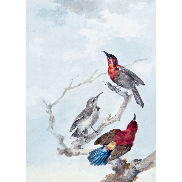 Dette smukke plakat viser en levende illustration af fugle, der sidder på en delikat gren. Kunstværket fanger naturens rolige skønhed med levende farver og intrikate detaljer. Perfekt til at tilføje et strejf af elegance til ethvert rum, produktet indeholder kun en enkelt plakat.