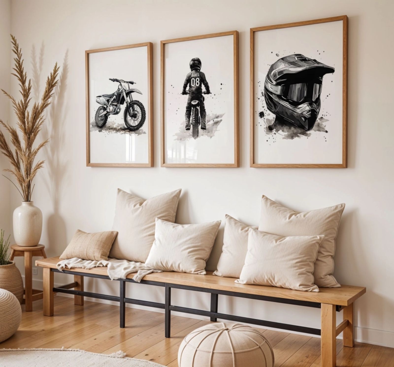 Udforsk vores Plads plakater med brugerdefineret tekst og tilpas dine vægge med skræddersyet kunst. Vores sæt med 3 plakater giver dig mulighed for at skabe et personligt udtryk og tilføje et strejf af elegance til dine omgivelser.